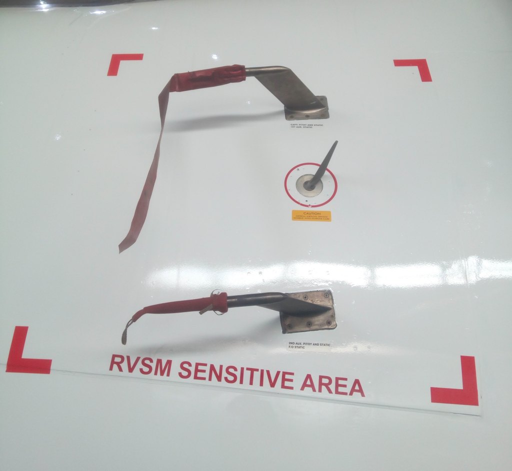 Static wicks at the trailing edge of an elevator and the tip of a horizontal stabiliser of a Boeing 777