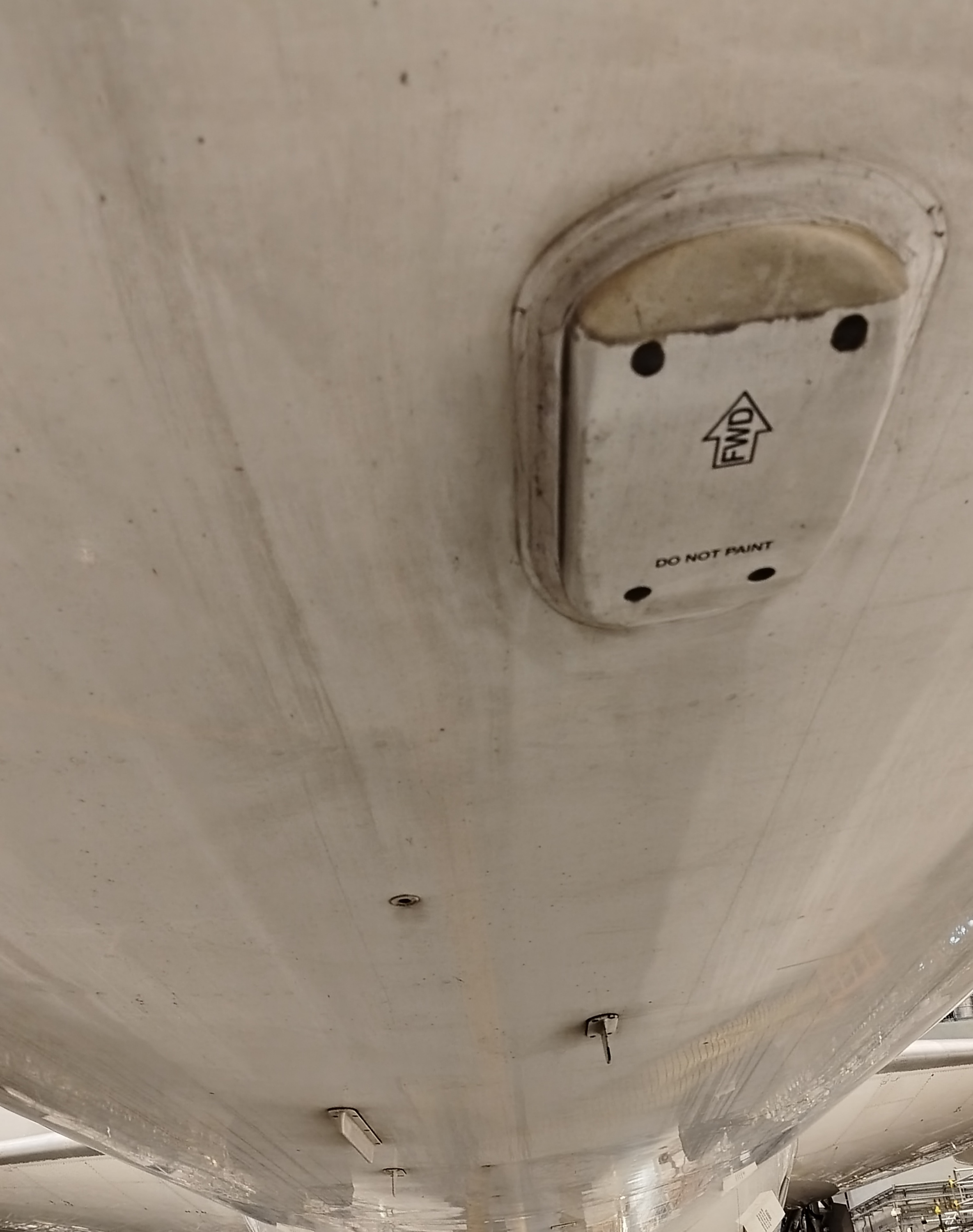 Images of various communication and navigation antennas on under-bellies of commercial transport airplanes.